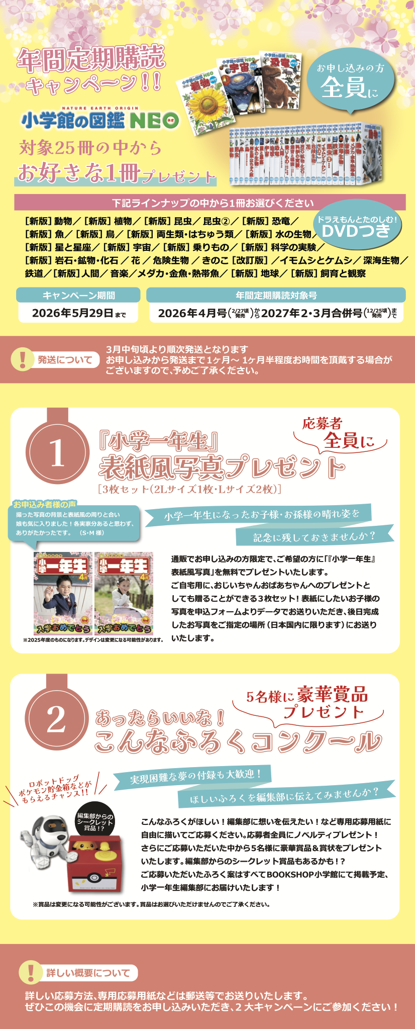 | プレゼント品 | 小学館の図鑑NEOお好きな1冊プレゼント! |